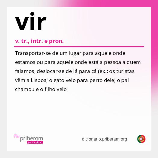 Ver também resposta à dúvida: vir-se..&definitions[]=%7CChegar%20e%20permanecer%20num%20lugar%20(ex.%3A%20ele%20veio%20para%20o%20Rio%20de%20Janeiro%20quando%20ainda%20era%20crian%C3%A7a).&definitions[]=%7CDerivar%20(ex.%3A%20o%20tofu%20vem%20da%20soja).&definitions[]=%7CSer%20transmitido%20(ex.%3A%20a%20doen%C3%A7a%20dela%20vem%20da%20parte%20da%20m%C3%A3e).&definitions[]=%7CSer%20proveniente%3B%20ter%20origem%20em%20(ex.%3A%20o%20tango%20vem%20da%20Argentina).&definitions[]=%7COcorrer%20(ex.%3A%20vieram-lhe%20%C3%A0%20mente%20algumas%20mem%C3%B3rias).&definitions[]=%7CEmanar%20(ex.%3A%20o%20barulho%20vem%20l%C3%A1%20de%20fora).&definitions[]=%7CDeslocar-se%20com%20um%20objectivo%20(ex.%3A%20ele%20veio%20%C3%A0%20festa%20pela%20comida).&definitions[]=%7CDescender,%20provir%20(ex.%3A%20ela%20vem%20de%20uma%20fam%C3%ADlia%20aristocrata).&definitions[]=%7CBater,%20chocar,%20esbarrar%20(ex.%3A%20a%20bicicleta%20veio%20contra%20o%20muro).&definitions[]=%7CExpor,%20apresentar,%20aduzir%20(ex.%3A%20todos%20vieram%20com%20propostas%20muito%20interessantes).&definitions[]=%7CChegar%20a,%20atingir%20(ex.%3A%20o%20fogo%20veio%20at%C3%A9%20perto%20da%20aldeia).&definitions[]=%7CApresentar-se%20em%20determinado%20local%20(ex.%3A%20os%20amigos%20disseram%20que%20viriam%20%C3%A0%20festa%3B%20a%20reuni%C3%A3o%20foi%20breve,%20mas%20nem%20todos%20vieram).&definitions[]=%7CChegar%20(ex.%3A%20o%20t%C3%A1xi%20ainda%20n%C3%A3o%20veio).&definitions[]=%7CRegressar,%20voltar%20(ex.%3A%20foram%20a%20casa%20e%20ainda%20n%C3%A3o%20vieram).&definitions[]=%7CSeguir,%20acompanhar%20(ex.%3A%20o%20c%C3%A3o%20vem%20sempre%20com%20ela).&definitions[]=%7CNascer%20(ex.%3A%20os%20gatinhos%20vieram%20mais%20cedo%20do%20que%20os%20donos%20esperavam).&definitions[]=%7CSurgir%20(ex.%3A%20a%20chuva%20veio%20em%20for%C3%A7a).&definitions[]=%7CCome%C3%A7ar%20a%20sair%20ou%20a%20jorrar%20(ex.%3A%20abriram%20as%20comportas%20e%20a%20%C3%A1gua%20veio).&definitions[]=%7CAcontecer,%20ocorrer,%20dar-se%20(ex.%3A%20a%20fama%20e%20o%20sucesso%20vieram%20de%20repente).&definitions[]=%7CAparecer,%20surgir%20(ex.%3A%20a%20caixa%20veio%20aberta).&definitions[]=%5BPortugal,%20Informal%5D%20%7CAtingir%20o%20orgasmo%20(ex.%3A%20estava%20muito%20excitado%20e%20veio-se%20depressa).&definitions[]=%7CDesmoronar-se%20(ex.%3A%20o%20pr%C3%A9dio%20veio%20abaixo%20com%20a%20explos%C3%A3o).)